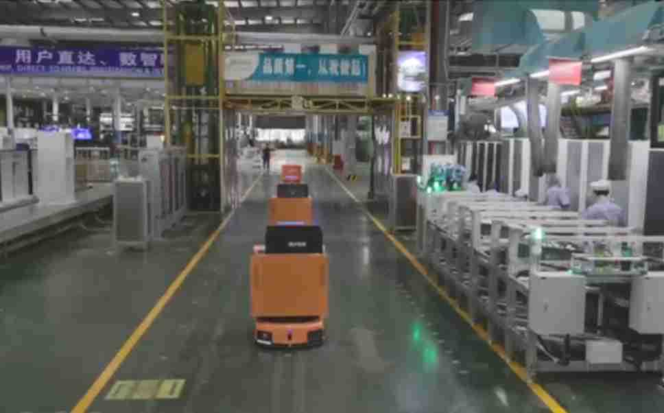 为车载冰箱物流配送打造的智能解决方案,,包含产中物流通过潜伏举升AMR搬运至线边,,产后成品物流智能仓储,,,,流程包含产中物流智能齐套入库,,线边安灯叫料AMR智能配送至线边,,,成品入库、、、出库,,,,通过无人堆高车机器人,,,,智能仓储管理替代人工作业管理,,,实现更高存储、、更高效率、、更具柔性化的解决方案。。